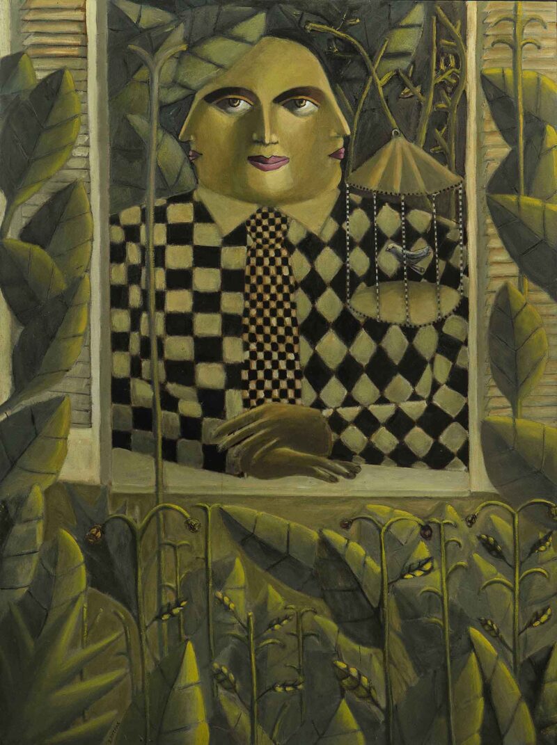 Στα έργα του αποδίδονται μορφές με περιγεγραμμένα σώματα και με καθηλωτικά μάτια, απαρτισμένες από μικρά, κλειστά γεωμετρικά σχήματα που ενέχουν εσώτερες ανταποκρίσεις, όπως συνέβαινε στη ζωγραφική του ύστερου ευρωπαϊκού 19ου αιώνα. Κάποιες λεπτομέρειες, όπως αλλοτινών καιρών παιχνίδια και κομμώσεις, το σκάκι, ένα ανθοδοχείο, ένα καράβι, φυτά και λουλούδια, ενισχύουν την ένταση στον χώρο και στην ατμόσφαιρα των έργων. Η εμμονή της μνήμης γίνεται βασανιστική, αποβαίνει όμως και απολυτρωτική για τη διαφυγή που προσφέρει.